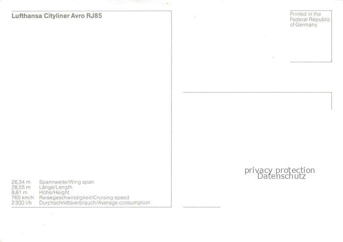 74154625 FLUGZEUGE ZIVIL Lufthansa Cityliner Avro RJ85 postalisch nicht gelaufen Erhaltung siehe scans [SanaeD93] KatCode: 22120000001300