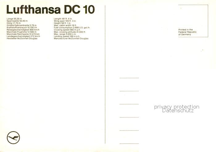 73908569 Flugzeuge Zivil Lufthansa DC 10 postalisch nicht gelaufen Erhaltung siehe scans [IrynaD87] KatCode: 22120000001300