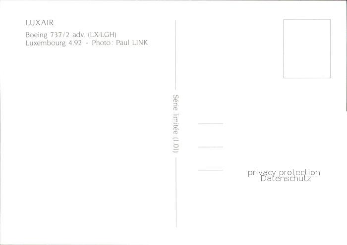Flugzeuge Zivil Luxair Boeing 737/2 adv LX-LGH postalisch nicht gelaufen Erhaltung siehe scans