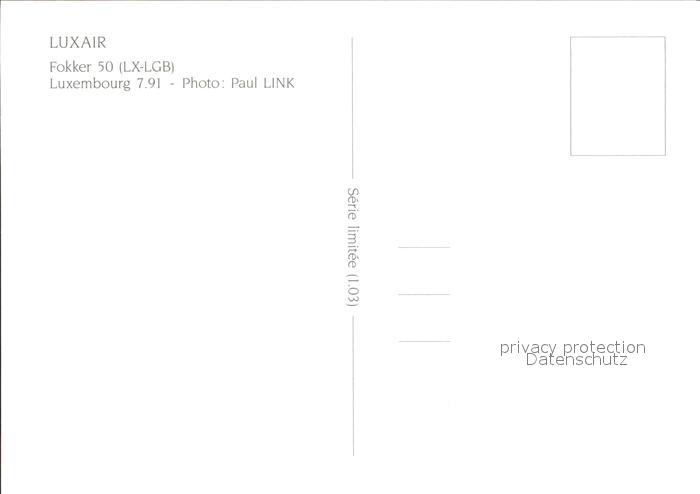 Flugzeuge Zivil Luxair Fokker 50 LX-LGB postalisch nicht gelaufen Erhaltung siehe scans