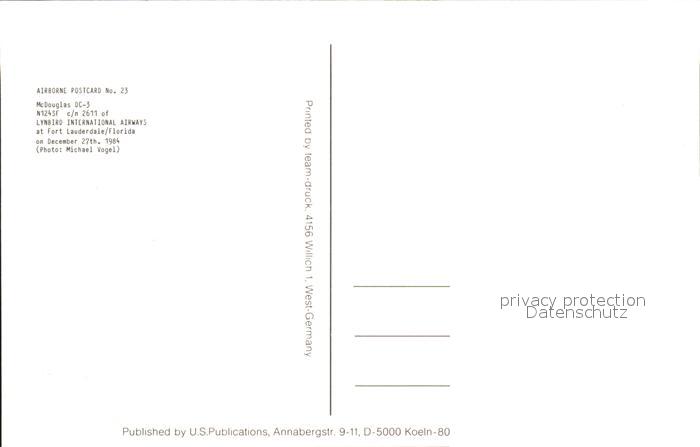 Flugzeuge Zivil Lynbird International Airways McDouglas DC-3 N1243F c/n 2611 postalisch nicht gelaufen Erhaltung siehe scans