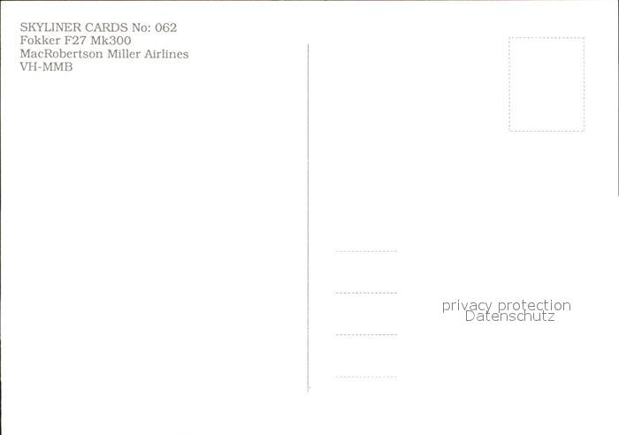 Flugzeuge Zivil MacRobertson Miller Airliners VH-MMB postalisch nicht gelaufen Erhaltung siehe scans