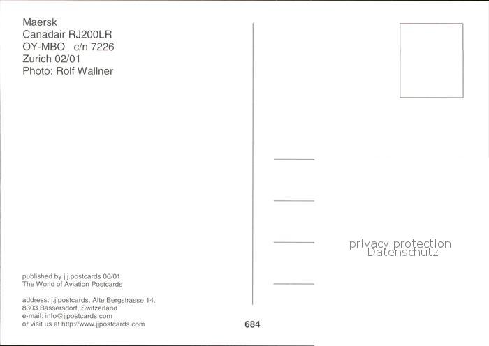 Flugzeuge Zivil Maersk Canadair RJ200LR OY-MBO c/n 7226 postalisch nicht gelaufen Erhaltung siehe scans