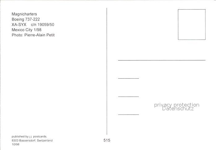 Flugzeuge Zivil Magnicharters Boeing 737-222 XA-SYX c/n 19059/50 postalisch nicht gelaufen Erhaltung siehe scans