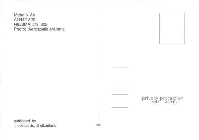 Flugzeuge Zivil Mahalo Air ATR42-320 N983MA c/n 308 postalisch nicht gelaufen Erhaltung siehe scans