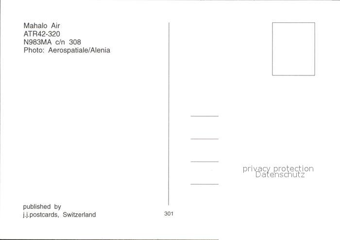 Flugzeuge Zivil Mahalo Air ATR42-320 N983MA c/n 308 postalisch nicht gelaufen Erhaltung siehe scans