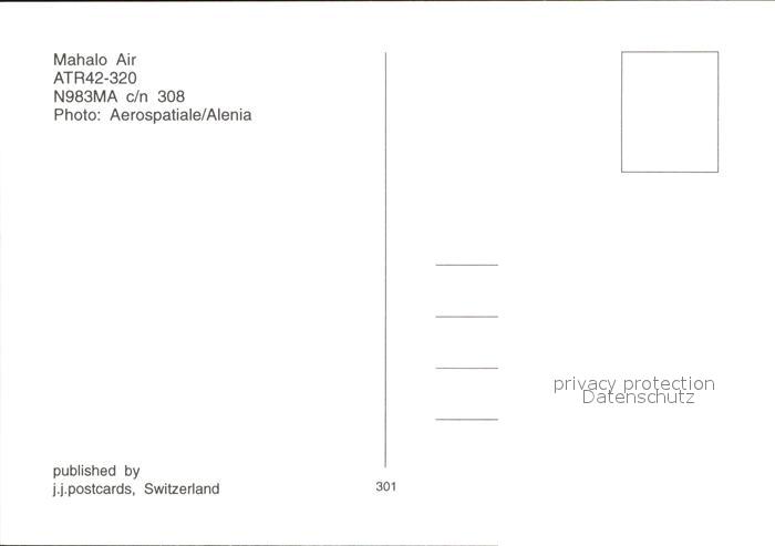 Flugzeuge Zivil Mahalo Air ATR42-320 N983MA c/n 3ss08 postalisch nicht gelaufen Erhaltung siehe scans