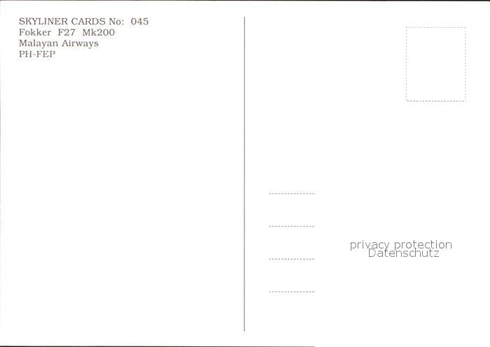 Flugzeuge Zivil Malayan Airways Fokker F27 Mk200 PH-FEP postalisch nicht gelaufen Erhaltung siehe scans