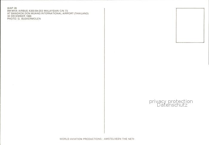 Flugzeuge Zivil Malaysian Airbus A300-B4-203 9M-MHA C/N 73 postalisch nicht gelaufen Erhaltung siehe scans