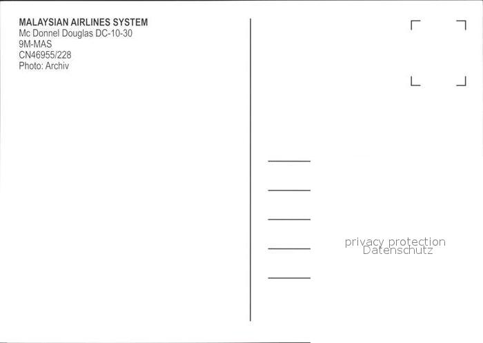 Flugzeuge Zivil Malaysian Airlines System MC Donnell Douglas DC-10-30 postalisch nicht gelaufen Erhaltung siehe scans