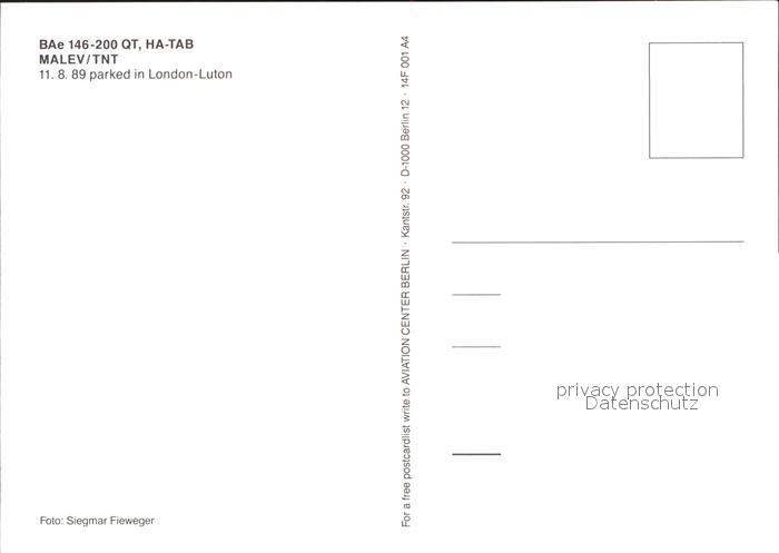 Flugzeuge Zivil Malev / TNT BAe 146-200 QT HA-TAB postalisch nicht gelaufen Erhaltung siehe scans