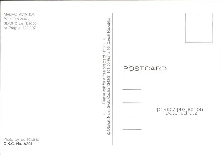 Flugzeuge Zivil Malmo Aviation BAe 146-200A SE-DRC c/n E2053 postalisch nicht gelaufen Erhaltung siehe scans