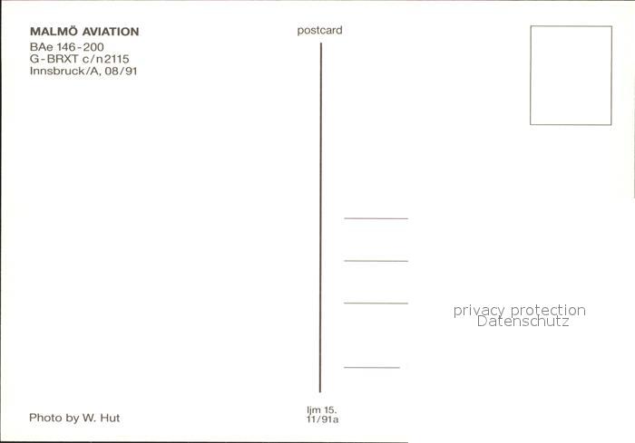 Flugzeuge Zivil Malmoe Aviation BAe 146-200 G-BRXT c/n 2115 postalisch nicht gelaufen Erhaltung siehe scans