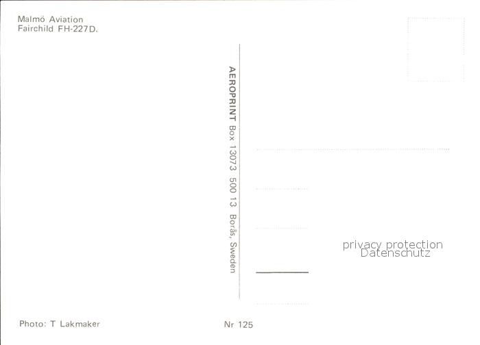 Flugzeuge Zivil Malmoe Aviation Fairchild FH-227D postalisch nicht gelaufen Erhaltung siehe scans