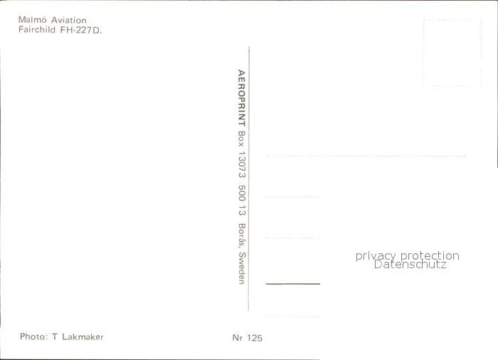 Flugzeuge Zivil Malmoe Aviation Fairchild FH-227D SE-KBR postalisch nicht gelaufen Erhaltung siehe scans