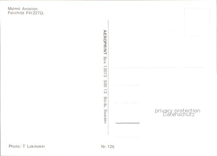 Flugzeuge Zivil Malmoe Aviation Fairchild FH-227D postalisch nicht gelaufen Erhaltung siehe scans