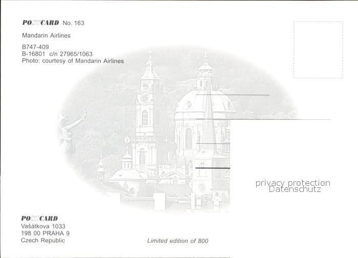 Flugzeuge Zivil Mandarin Airlines B747-409 B-16801 c/n 27965/1063 postalisch nicht gelaufen Erhaltung siehe scans