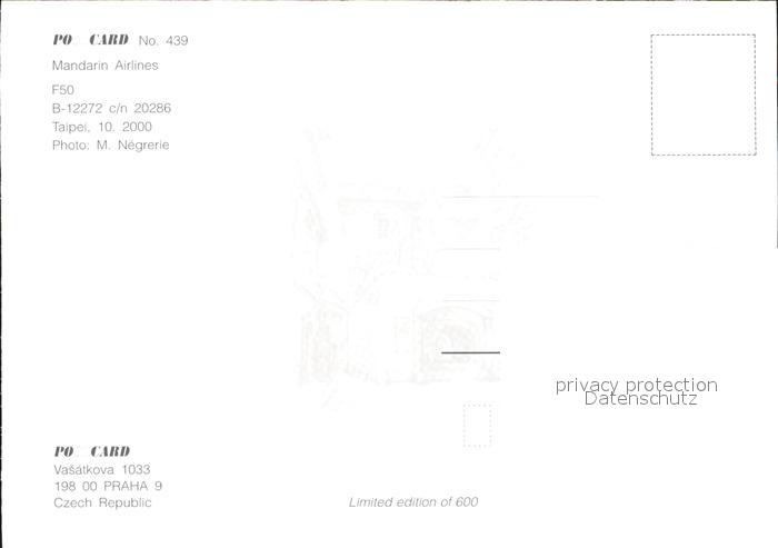 Flugzeuge Zivil Mandarin Airlines F50 B-12272 c/n 20286 postalisch nicht gelaufen Erhaltung siehe scans