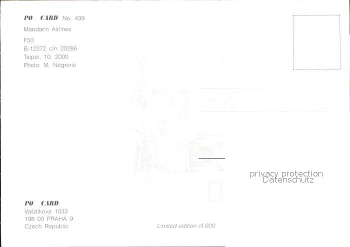 Flugzeuge Zivil Mandarin Airlines F50 B-12272 c/n 20286 postalisch nicht gelaufen Erhaltung siehe scans