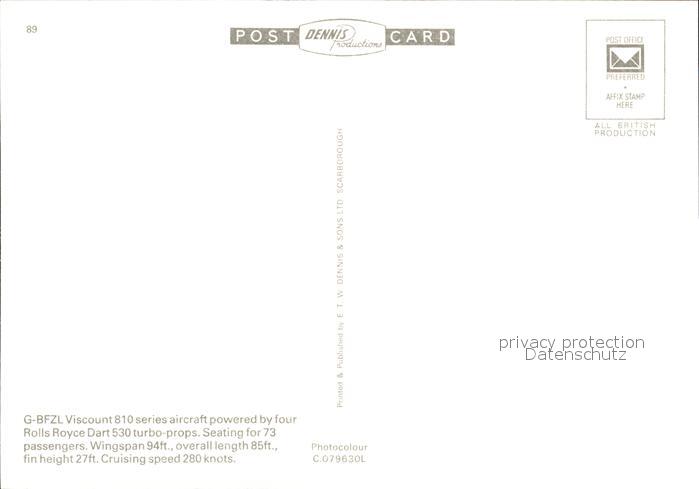 Flugzeuge Zivil Manx Airlines Viscount 810 G-BFZL postalisch nicht gelaufen Erhaltung siehe scans