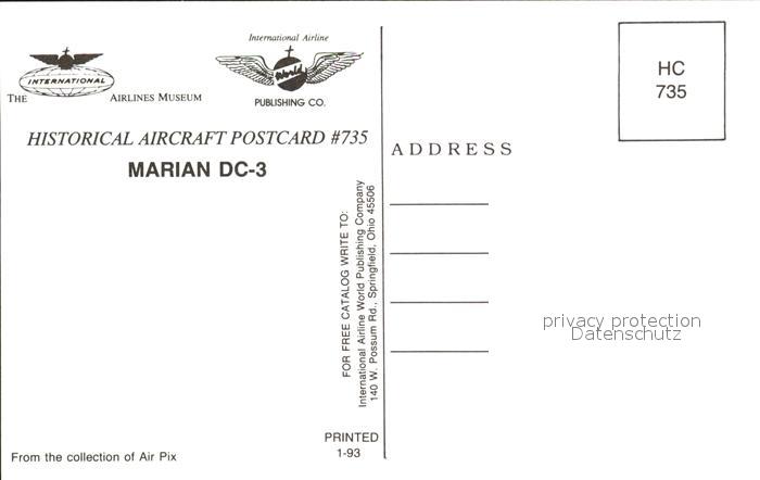 Flugzeuge Zivil Marian DC-3 N33MS postalisch nicht gelaufen Erhaltung siehe scans