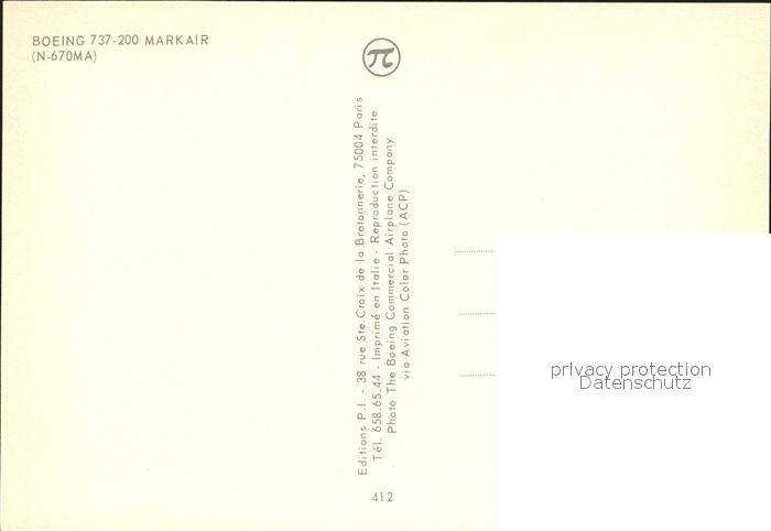 Flugzeuge Zivil Markair Boeing 737-200 N670MA postalisch nicht gelaufen Erhaltung siehe scans