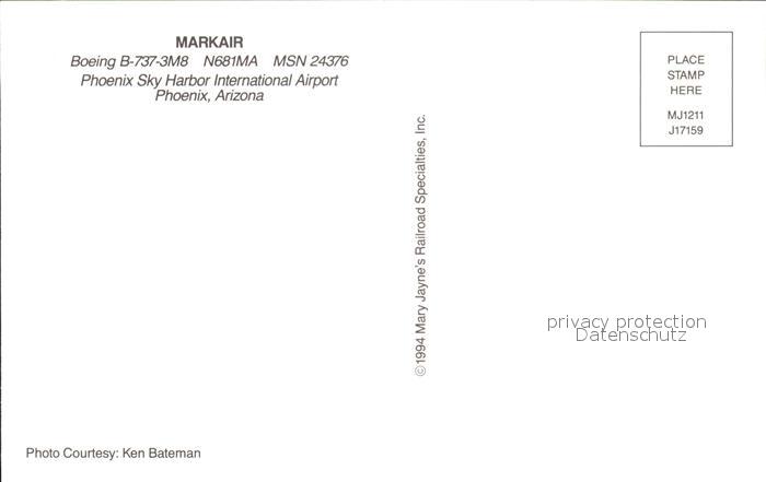 Flugzeuge Zivil Markair Boeing B-737-3M8 N681MA MSn 24376 postalisch nicht gelaufen Erhaltung siehe scans