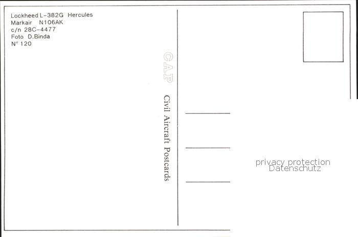 Flugzeuge Zivil Markair Lockheed L-382G Hercules N106AK c/n 28C-4477 postalisch nicht gelaufen Erhaltung siehe scans