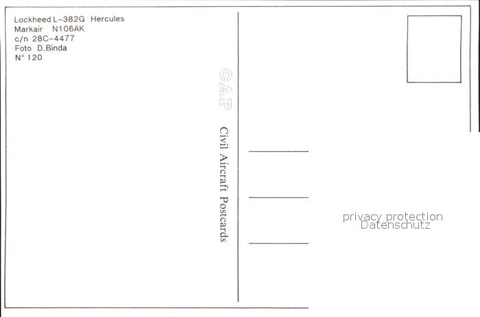 Flugzeuge Zivil Markair N106AK Lockheed L-382G Hercules c/n 28C-4477 postalisch nicht gelaufen Erhaltung siehe scans