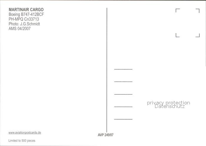 Flugzeuge Zivil Martinair Cargo Boeing B747-412BCF PH-MPQ Cn33713 postalisch nicht gelaufen Erhaltung siehe scans