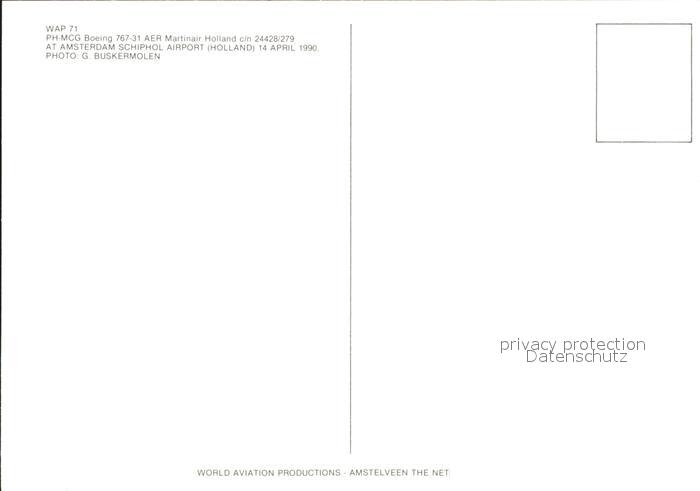 Flugzeuge Zivil Martinair Holland Boeing 767-31 PH-MCG c/n 24428/279 postalisch nicht gelaufen Erhaltung siehe scans