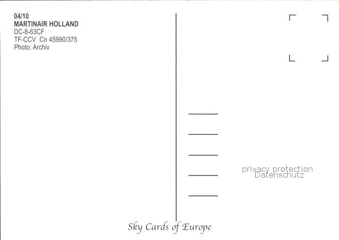 Flugzeuge Zivil Martinair Holland DC-8-63CF TF-CCV cn 45990/375 postalisch nicht gelaufen