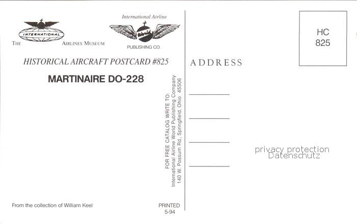 Flugzeuge Zivil Martinaire DO-228 N228ME postalisch nicht gelaufen Erhaltung siehe scans