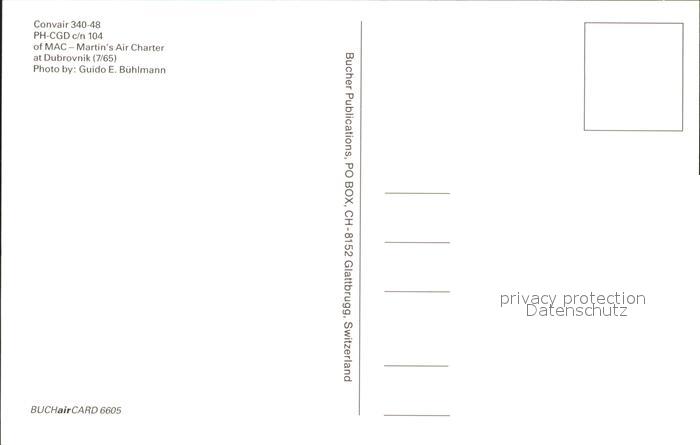 Flugzeuge Zivil Martin’s Air Charter Convair 340-48 PH-CGD c/n 104 postalisch nicht gelaufen Erhaltung siehe scans