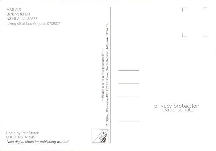 Flugzeuge Zivil MasAir B-767-316FER N314LA c/n 32537 postalisch nicht gelaufen Erhaltung siehe scans