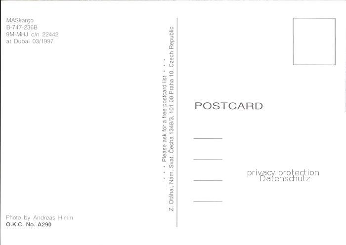 Flugzeuge Zivil MASkargo B-747-236B 9M-MHJ c/n 22442 postalisch nicht gelaufen Erhaltung siehe scans