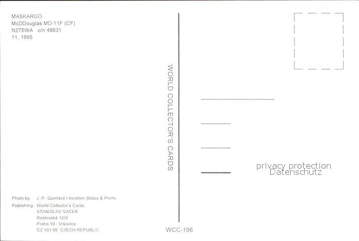 Flugzeuge Zivil Maskargo McDDouglas MD-11F CF N275WA c/n 48631 postalisch nicht gelaufen Erhaltung siehe scans