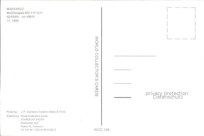 Flugzeuge Zivil Maskargo McDDouglas MD-11F CF N275WA c/n 48631 postalisch nicht gelaufen Erhaltung siehe scans