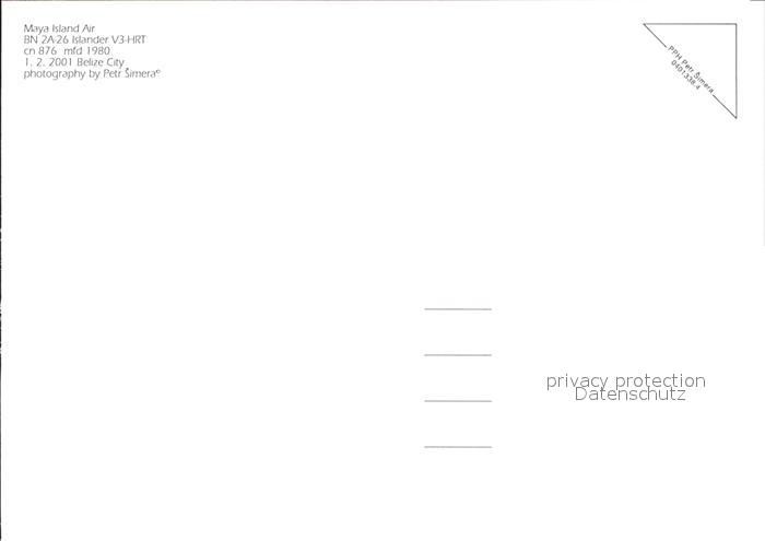 Flugzeuge Zivil Maya Island Air BN 2A-26 Islander V3-HRT cn 876 postalisch nicht gelaufen Erhaltung siehe scans