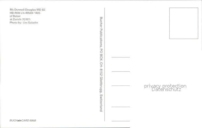 Flugzeuge Zivil Mc Donnell Douglas MD-82 HB-INW c/n 49569/1405 Balair postalisch nicht gelaufen Erhaltung siehe scans