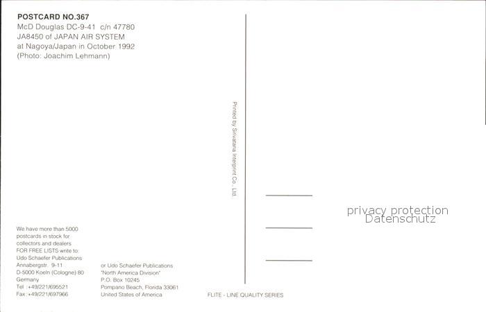 Flugzeuge Zivil McD Douglas DC-9-41 c/n 47780 JA8450 Japan Air System postalisch nicht gelaufen Erhaltung siehe scans