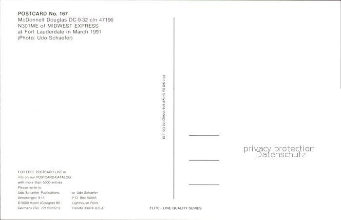 Flugzeuge Zivil McDonnell Douglas DC-9-32 c/n 47190 N301ME Midwest Express postalisch nicht gelaufen Erhaltung siehe scans