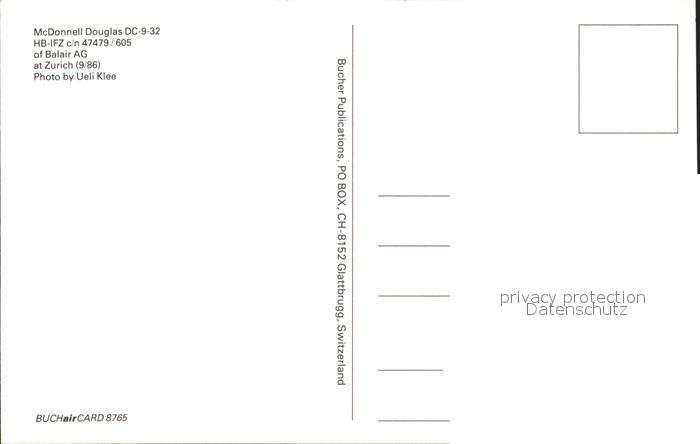 Flugzeuge Zivil McDonnell Douglas DC-9-32 HB-IFZ c/n 47479/605 Balair AG postalisch nicht gelaufen Erhaltung siehe scans