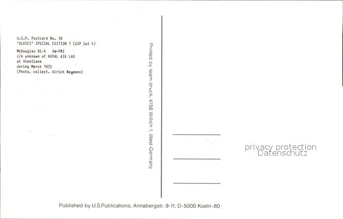 Flugzeuge Zivil McDouglas DC-4 XW-PNI Royal Air Lao postalisch nicht gelaufen Erhaltung siehe scans