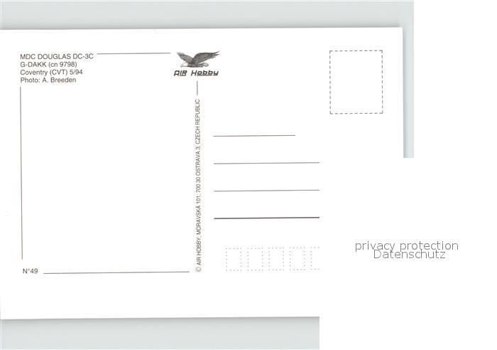 Flugzeuge Zivil MDC Douglas DC-3C G-DAKK cn 9798 postalisch nicht gelaufen Erhaltung siehe scans