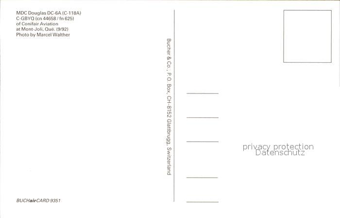 Flugzeuge Zivil MDC Douglas DC-6A (C-118A) C-GBYQ (cn 44658 7 fn 625 Conifair Aviation postalisch nicht gelaufen Erhaltung siehe scans