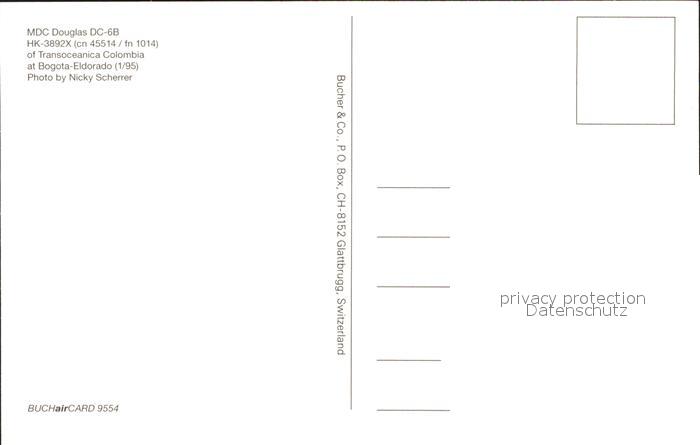 Flugzeuge Zivil MDC Douglas DC-6B HK-3892X cn 45514/fn 1014 Transoceanica Colombia postalisch nicht gelaufen Erhaltung siehe scans