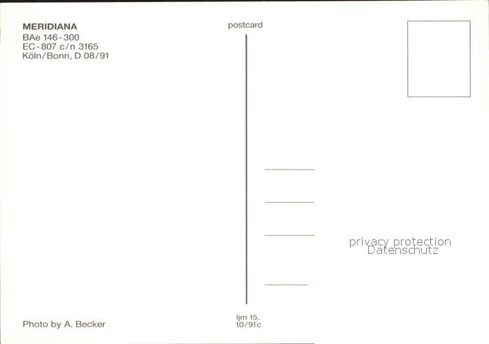 Flugzeuge Zivil Meridiana BAe 146-300 EC-807 c/n 3165 postalisch nicht gelaufen Erhaltung siehe scans