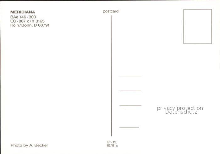 Flugzeuge Zivil Meridiana BAe 146-300 EC-807 c/n 3165 postalisch nicht gelaufen Erhaltung siehe scans