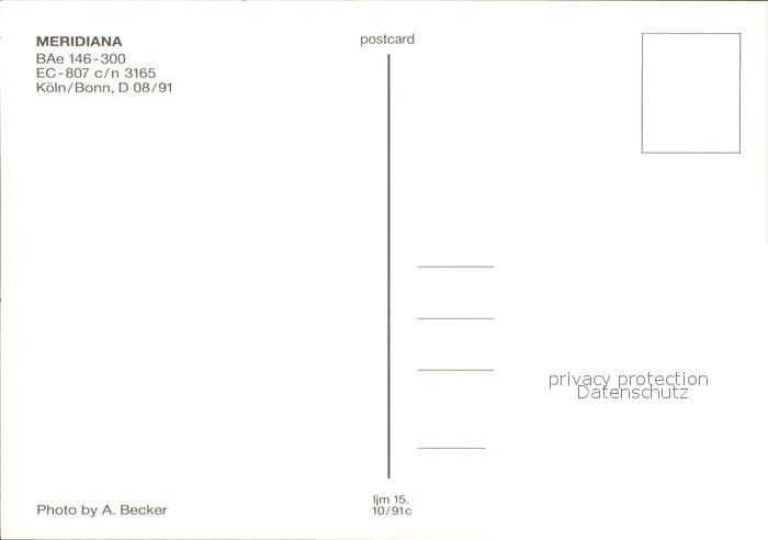 Flugzeuge Zivil Meridiana BAe 146-300 EC-807 c/n 3165 postalisch nicht gelaufen Erhaltung siehe scans